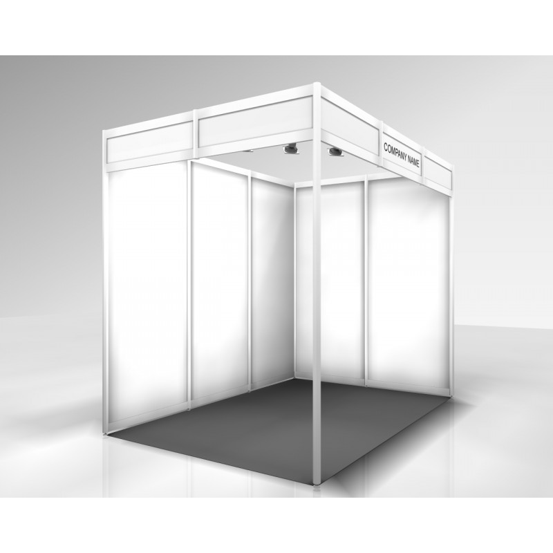 booth (height 35 cm), standard fascia inscription (Arial, black color, max. 30 letters)